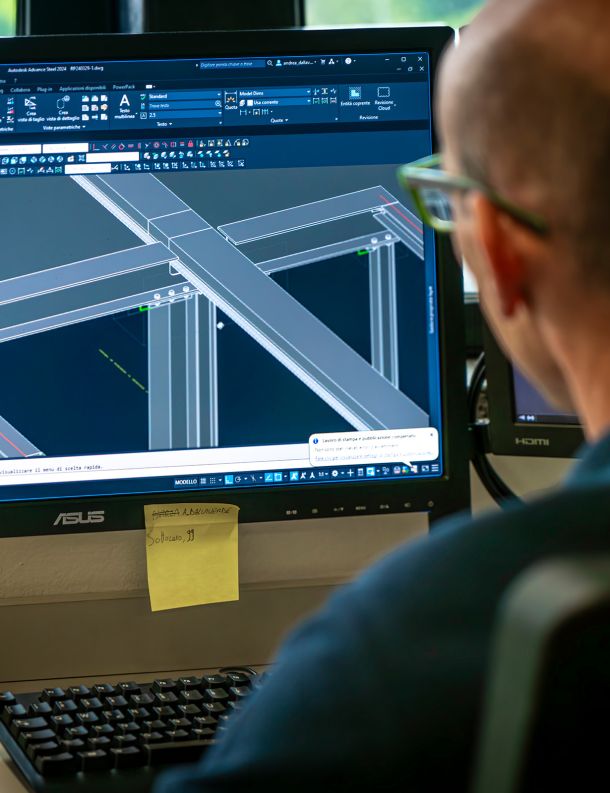 Abbiamo adottato le migliori tecnologie di grafica computerizzata attualmente disponibili e manteniamo rapporti con le migliori eccellenze italiane del settore. Grazie ad un ufficio tecnico dotato di software per la modellazione 3D delle strutture, progettiamo opere sempre più grandi e complesse, prodotte, in seconda battuta, all'interno della nostra officina dotata delle più moderne attrezzature per la gestione dalla saldatura.