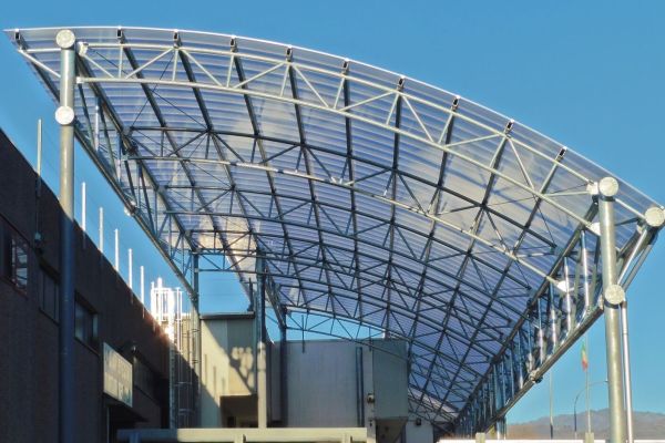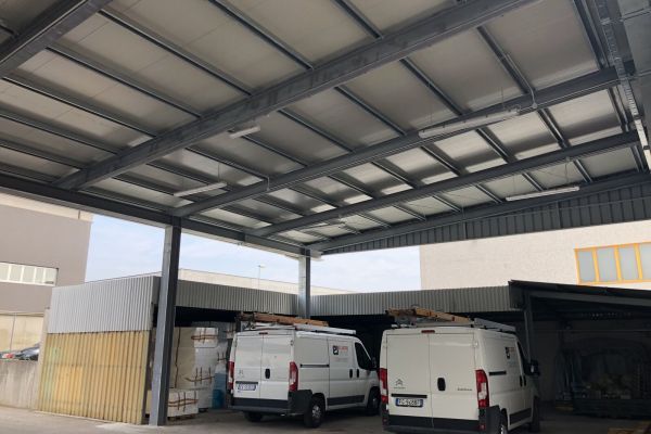 Le nostre coperture in acciaio proteggono efficacemente piazzali, terrazze e aree di manovra.