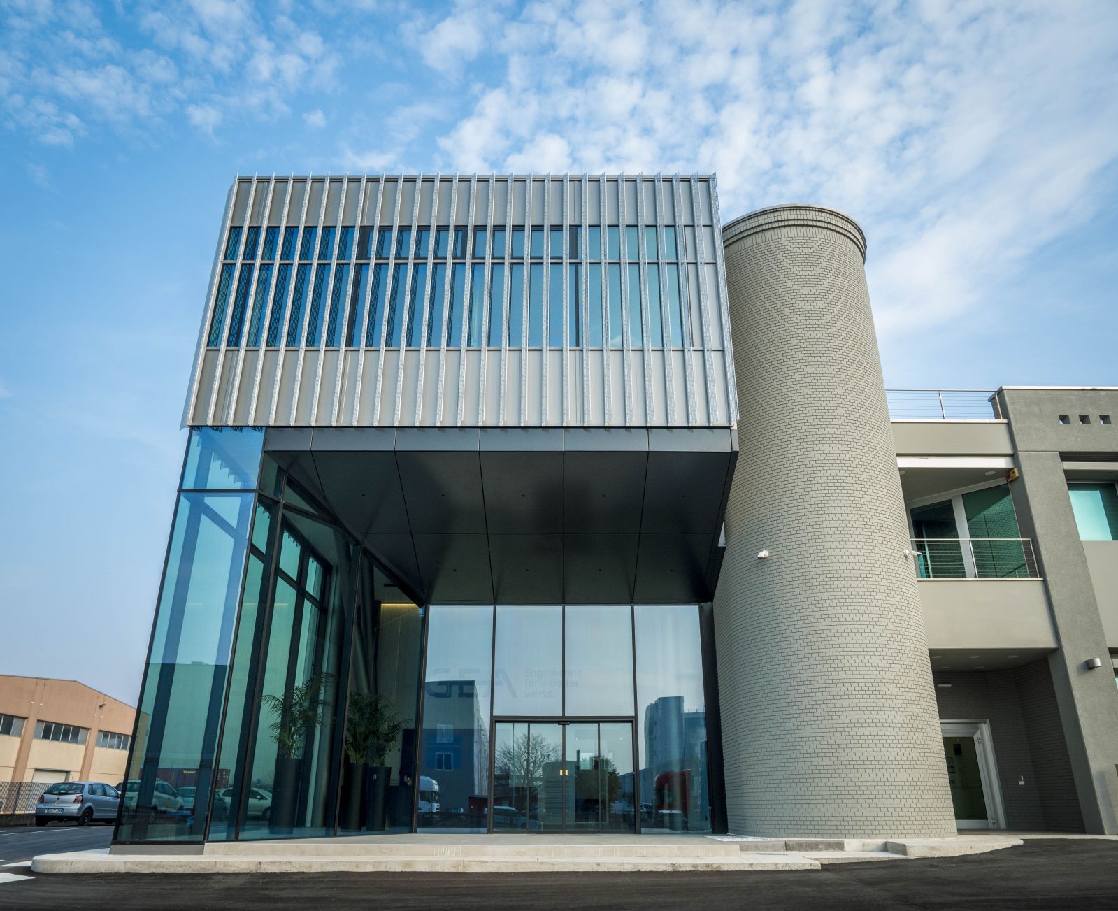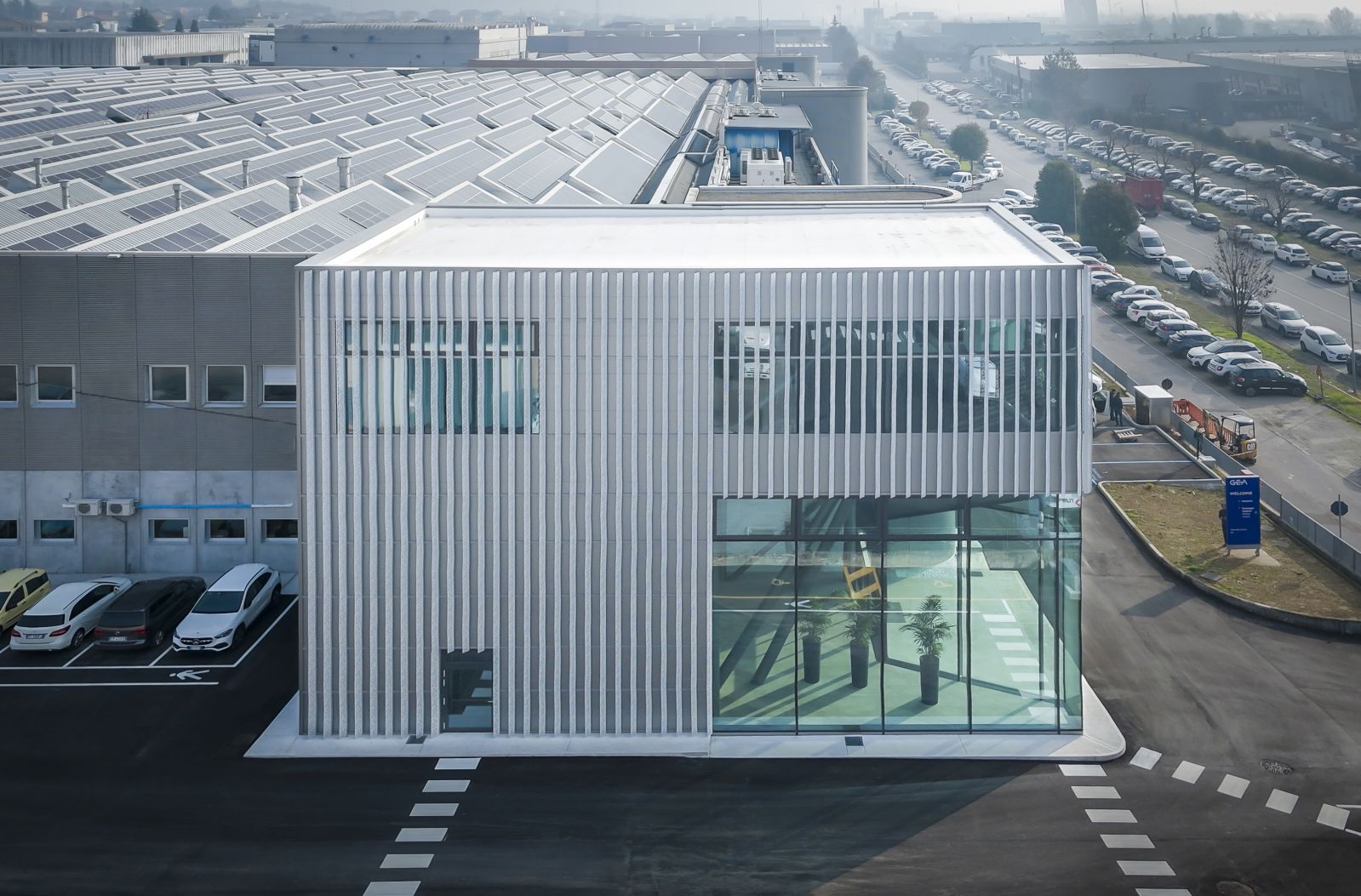 Vi presentiamo la nuova palazina uffici della GEA Imaforni, che splende in tutta la sua magnificenza. Questa struttura in acciaio, arricchita da rivestimenti in pannello sandwich e serramenti di alta qualità forniti da Shuko e realizzati dalla Ferrari Serramenti, riflette il nostro impegno per l'eccellenza in ogni progetto. Non da ultimo, i frangisole in lamiera di alluminio con geometria e foratura custom, dal design unico e su misura, conferiscono un tocco di raffinatezza, frutto della collaborazione con lo studio Quoin. Siamo fieri del risultato finale, che incarna la nostra passione per la qualità e la bellezza in ogni dettaglio.