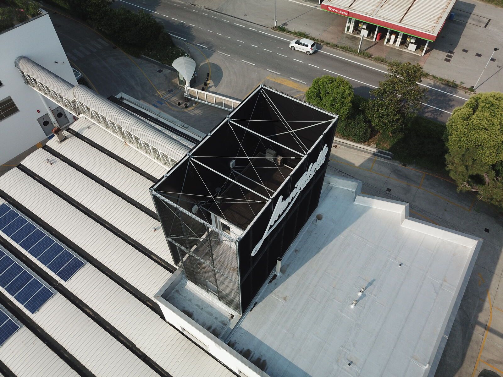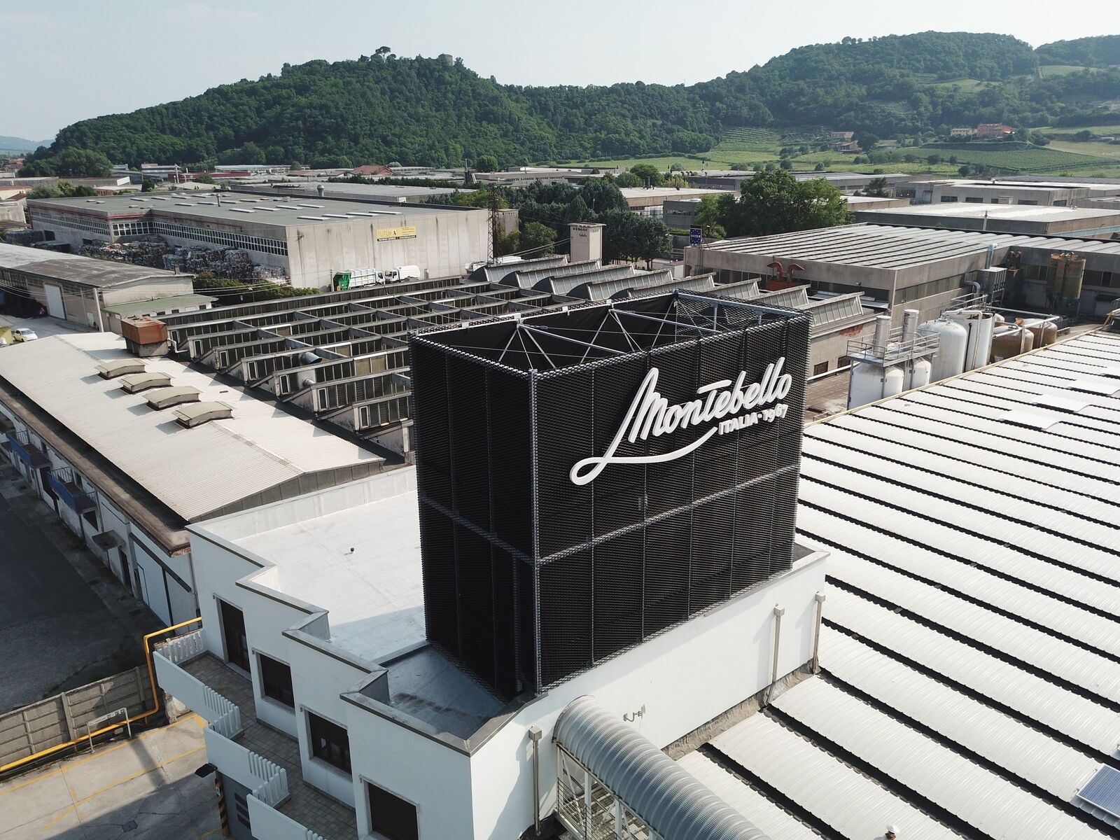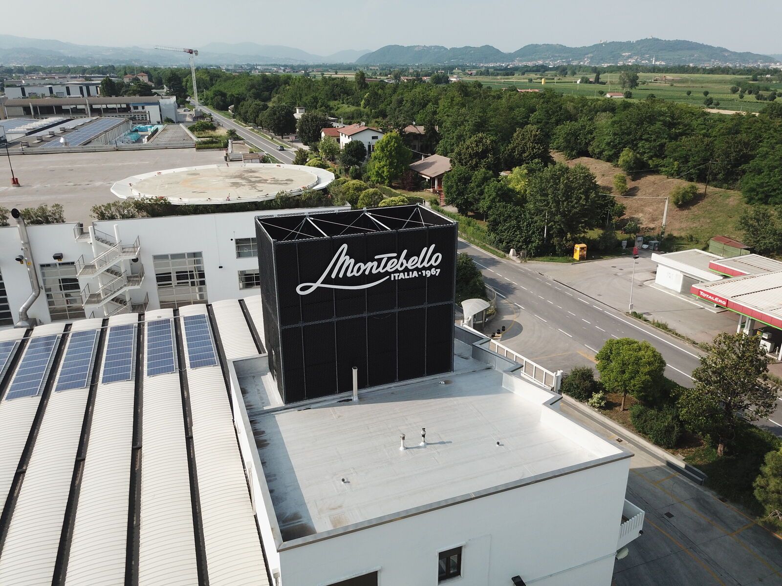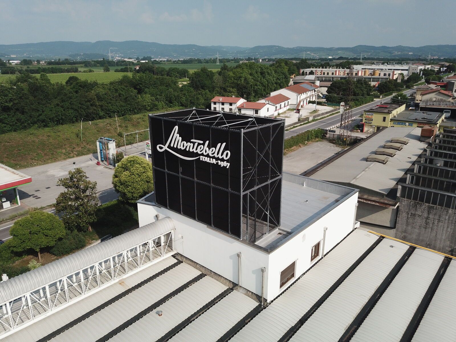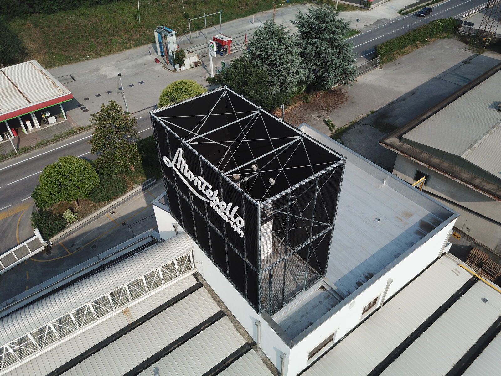 Per celebrare quando ha raggiunto il prestigioso traguardo dei cinquant'anni di attività, l'Azienda Montebellana si è regalata una nuova insegna retroilluminata, sostenuta da una struttura metallica realizzata da Effevi con profili tubolari strutturali e rivestita con delle lamiere stirate verniciate nere opache fornite dalla Mariani Tech. Il calcolo strutturale dell'opera è stato redato dall'Ingegnere Gianfranco Fongaro.