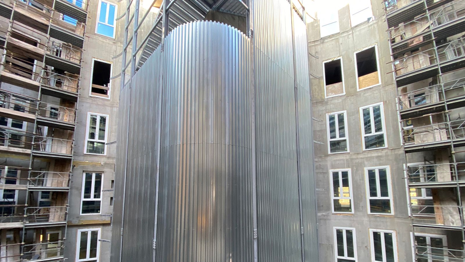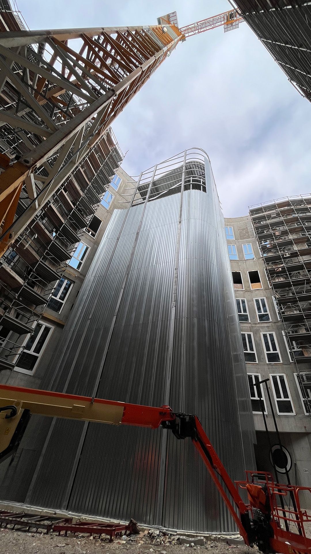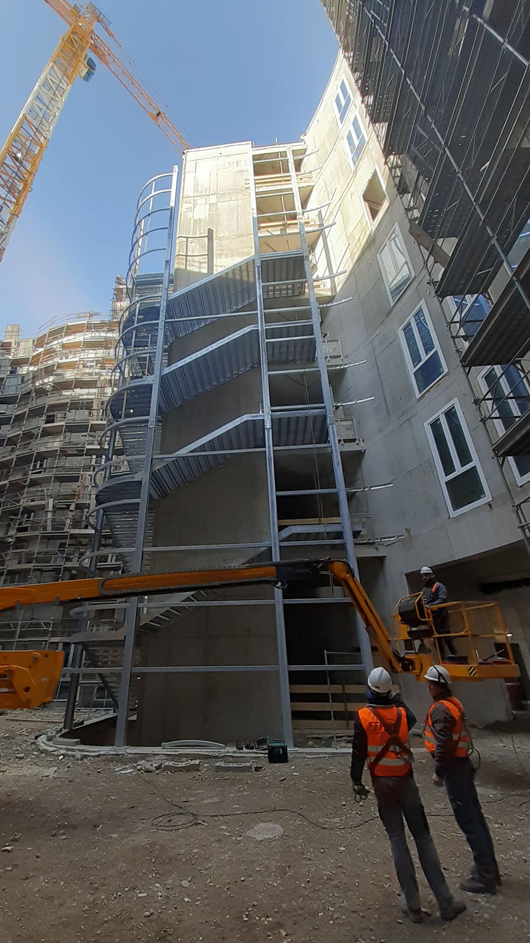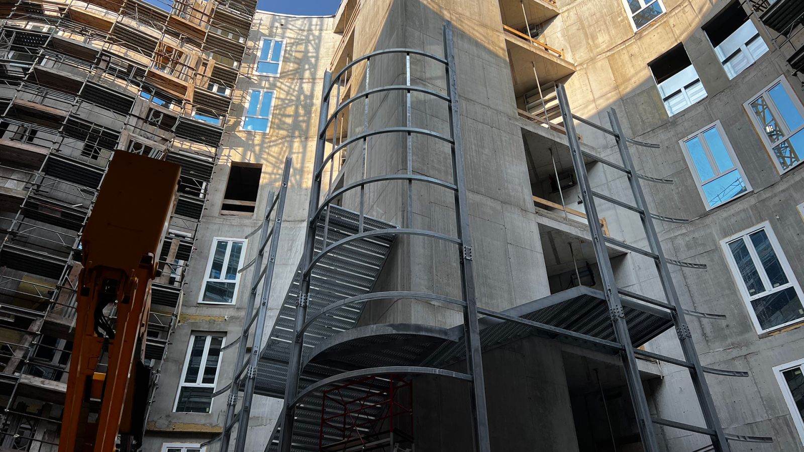 Questa scala di sicurezza rivestita realizzata per il Nuovo Ospedale di Montecchio Maggiore, sbarca ad una quota di +31,38 metri e ha una larghezza utile di 2 metri, in ottemperanza alle normative specifiche per gli ambienti ospedalieri.