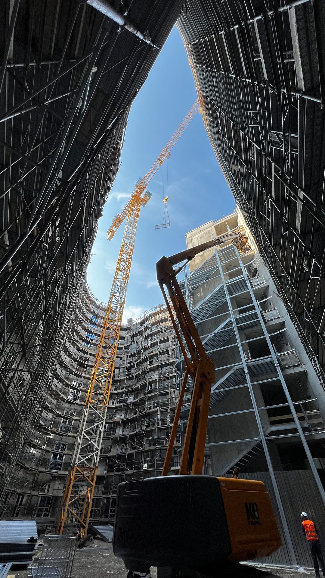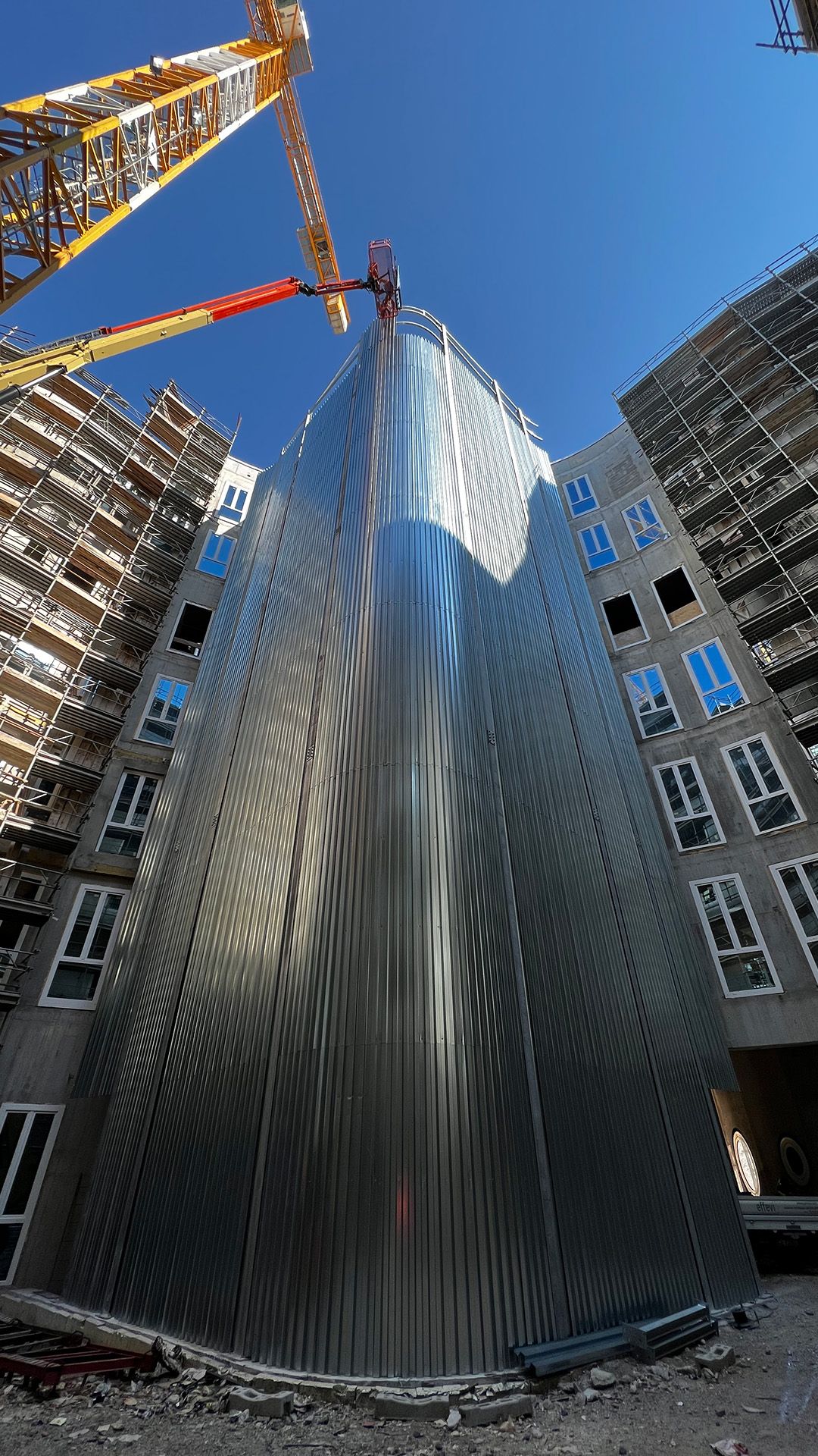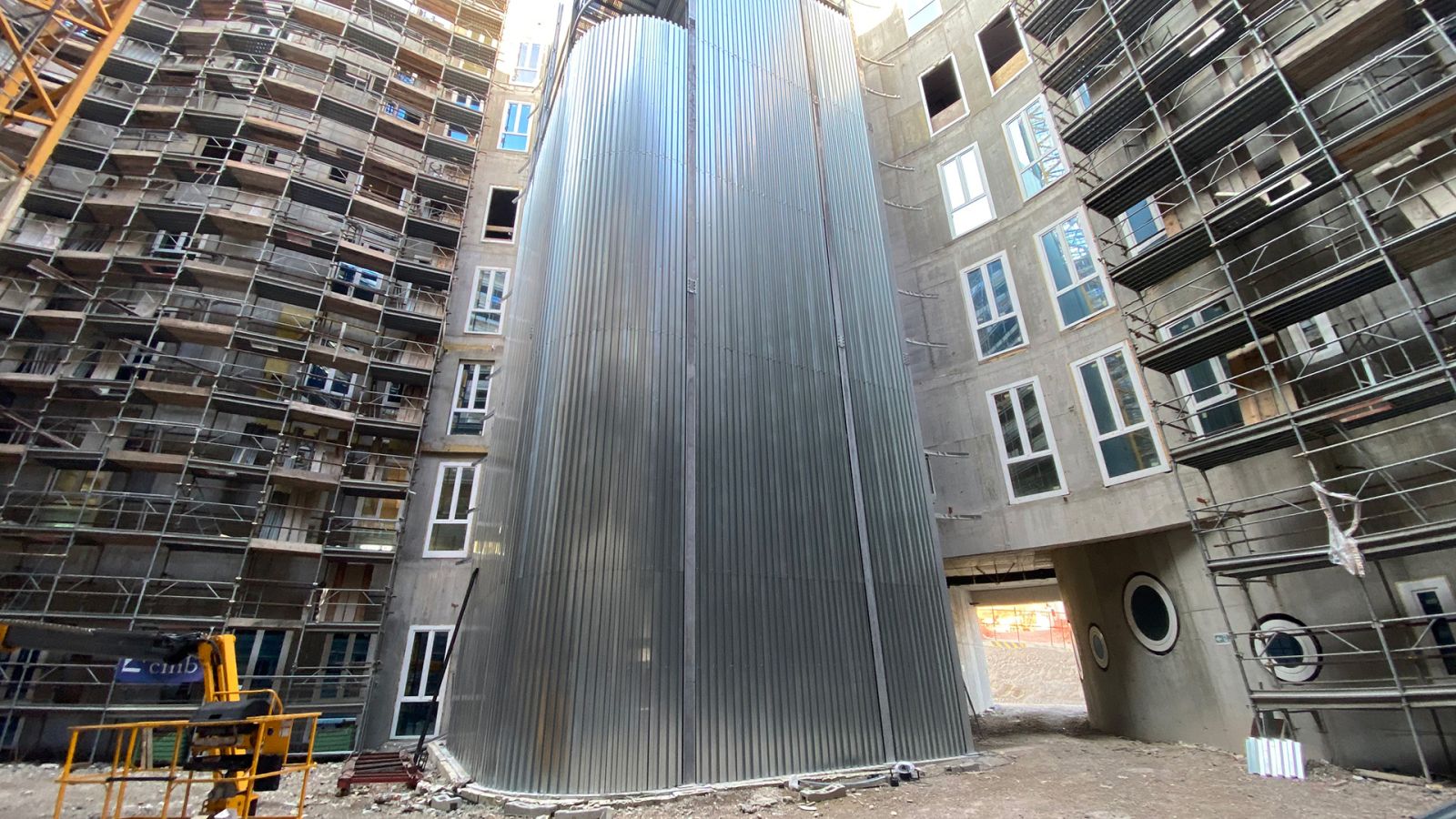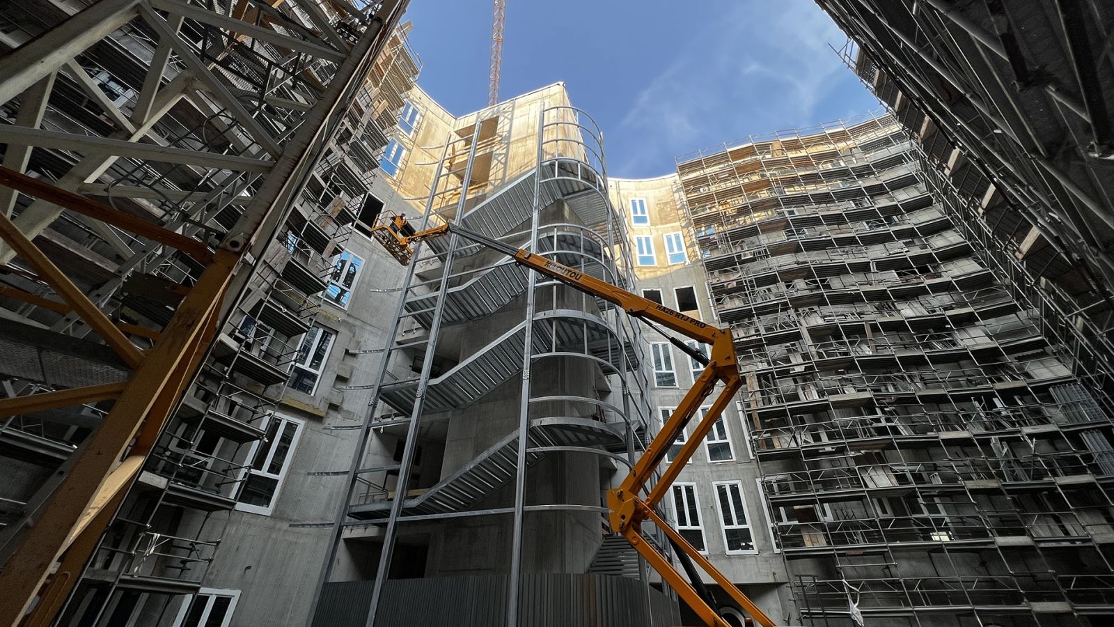 Questa scala di sicurezza rivestita realizzata per il Nuovo Ospedale di Montecchio Maggiore, sbarca ad una quota di +31,38 metri e ha una larghezza utile di 2 metri, in ottemperanza alle normative specifiche per gli ambienti ospedalieri.