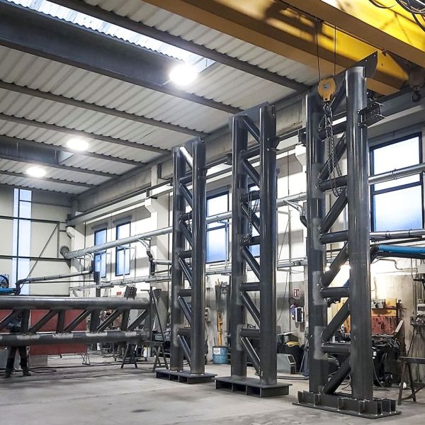 Grazie alla nostra avanzata tecnologia di progettazione 3D, siamo in grado di produrre semilavorati con geometrie complesse che permettono trasformare l’acciaio in opere d'arte architettoniche. Un essempio sono questi tubi lavorati al laser che ci permetteranno di costruire una tettoia con uno sbalzo di ben 10 metri! È la terza volta che Effevi realizza una tettoia di queste dimensioni.
