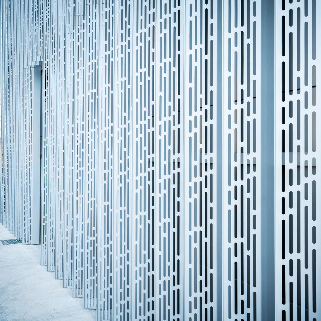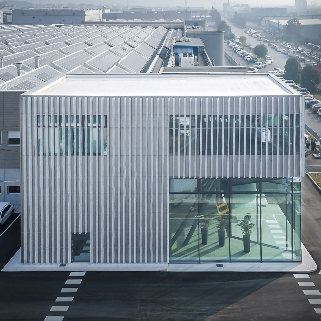Non da ultimo, i frangisole in lamiera di alluminio con geometria e foratura custom, dal design unico e su misura, conferiscono un tocco di raffinatezza, frutto della collaborazione con lo studio Quoin.